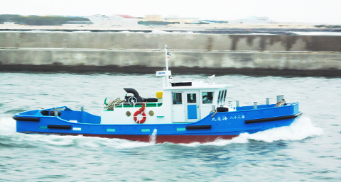 本船は京浜港内の港湾業務に従事する小型曳船で 8mmの鋼板による頑丈な船体と大馬力の主機関に よる強力な曳航力をもつ高性能な船舶である。 もどる