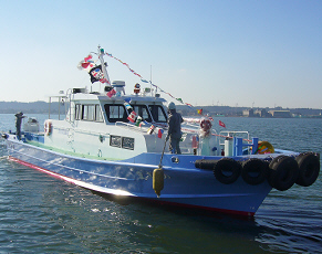 本船は千葉港を拠点として東京湾内の港湾業務に従事する船舶で オイルフェンスをはじめとする防災設備を搭載しています。 もどる