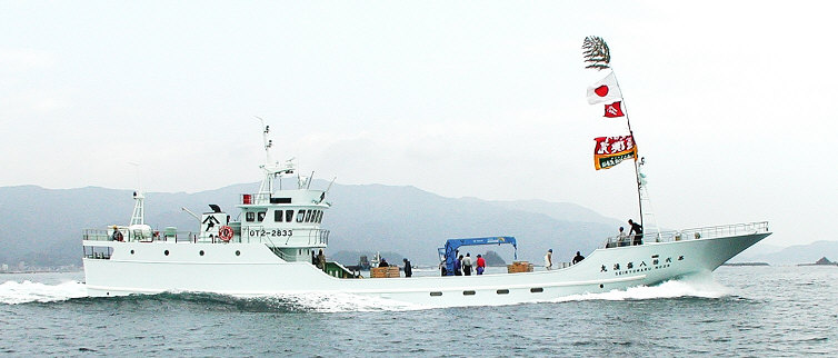 完成航走写真 活魚槽満水のためイラストより喫水が入っている